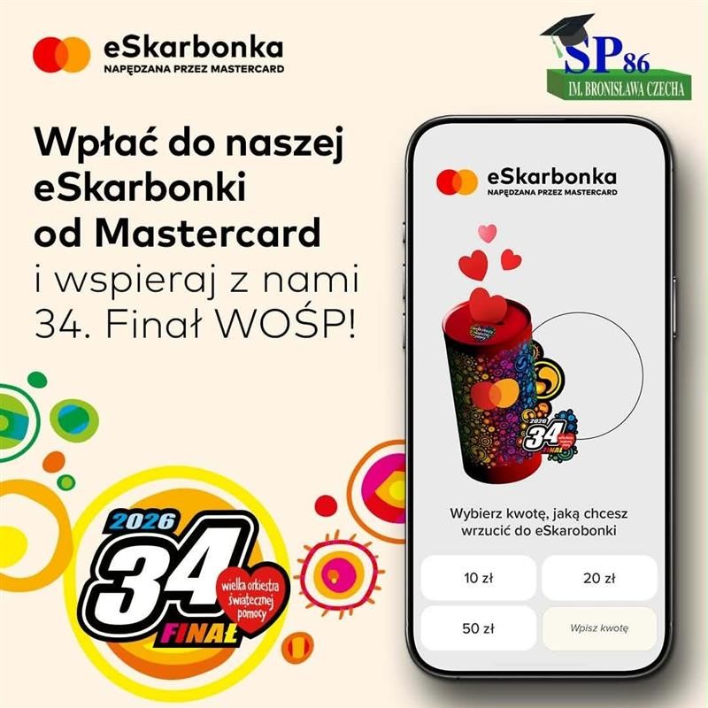 po raz pierwszy w Szkole Podstawowej nr 86 uruchomiona została eSkarbonka WOŚP. To bezpieczny i wygodny sposób, aby wesprzeć 34. Finał Wielkiej Orkiestry Świątecznej Pomocy poprzez wpłatę online.