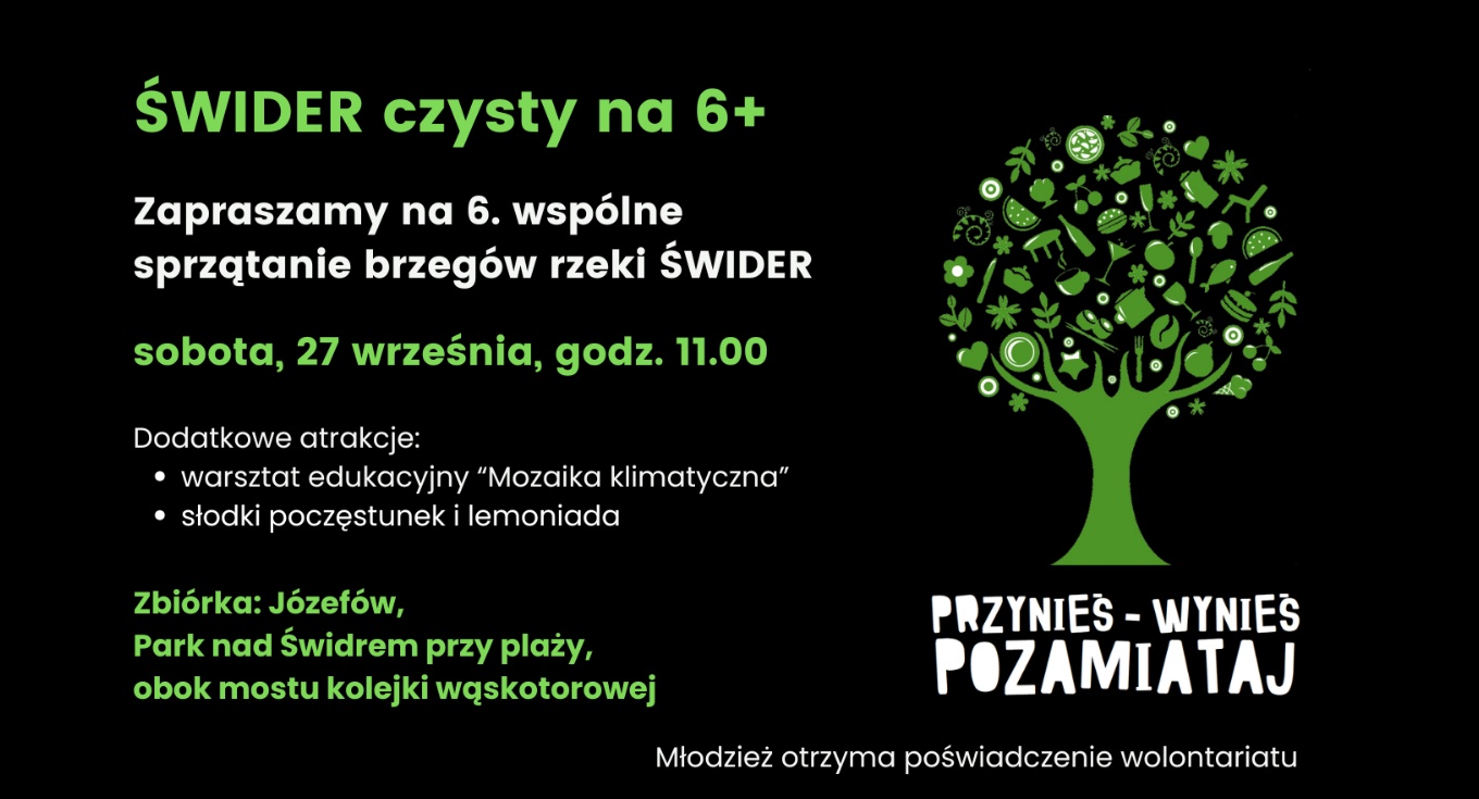 serdecznie zapraszają mieszkańców Józefowa i okolic na szóste coroczne sprzątanie brzegów rzeki Świder.