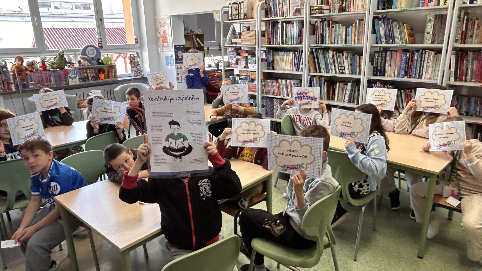 Dziś (24.03) w bibliotece szkolnej gościliśmy klasę 2b. Podczas spotkania rozmawialiśmy o tym, dlaczego warto czytać, jakie korzyści płyną z obcowania z książką oraz kim jest dobry czytelnik. Wspólnie stworzyliśmy także „konstrukcję czytelnika”, zastanawiając się, jakie cechy i nawyki pomagają rozwijać czytelniczą pasję.