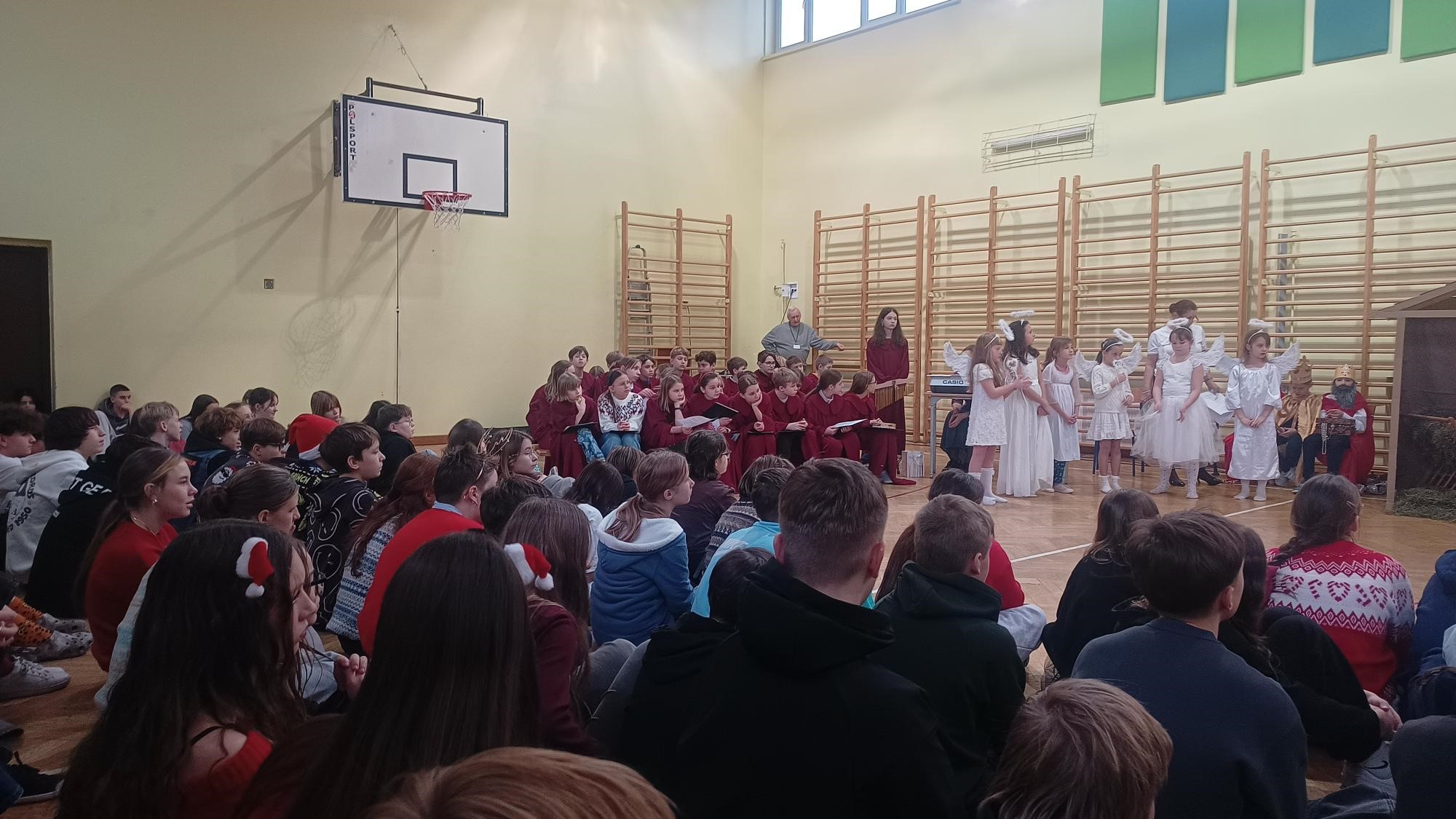 W naszej szkole odbyło się wyjątkowe przedstawienie bożonarodzeniowe – Jasełka. Uczniowie, z dużym zaangażowaniem i w świątecznej atmosferze, zaprezentowali historię narodzin Jezusa, wzbogaconą o piękne kolędy i starannie przygotowaną scenografię. Występ dostarczył widzom wielu wzruszeń oraz wprowadził wszystkich w radosny, świąteczny nastrój.