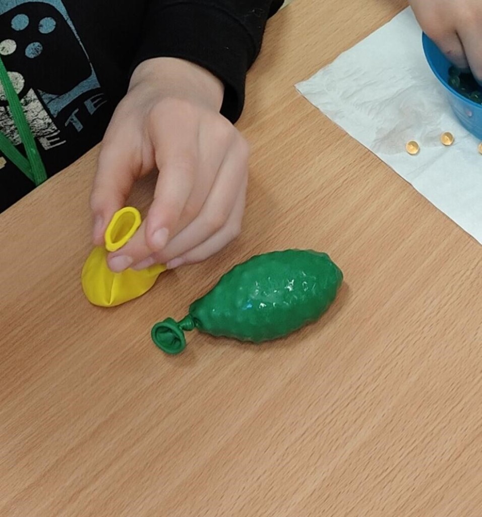 Aktywność ta miała pozytywny wpływ na rozwój sensoryczny dzieci – poprzez dotyk, ściskanie i manipulowanie materiałem uczniowie stymulowali zmysł czucia oraz rozwijali motorykę małą. Kontakt z różnorodnymi fakturami pomagał im lepiej poznawać i rozumieć bodźce sensoryczne. Dodatkowo tworzenie gniotków działało relaksująco i wyciszająco, co sprzyjało regulacji emocji. Dzieci mogły rozładować napięcie, poprawić koncentrację oraz poczuć satysfakcję z własnoręcznie wykonanej pracy.
