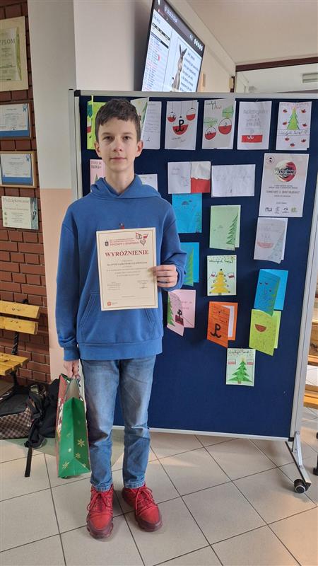 Wyróżnienie w IV Warszawskim Konkursie Historyczno-Technicznym „Pamiętajmy o Bohaterach” zdobył Kacper z 7a, który wykonał piękną, przestrzenną pracę, znak Polski Walczącej.