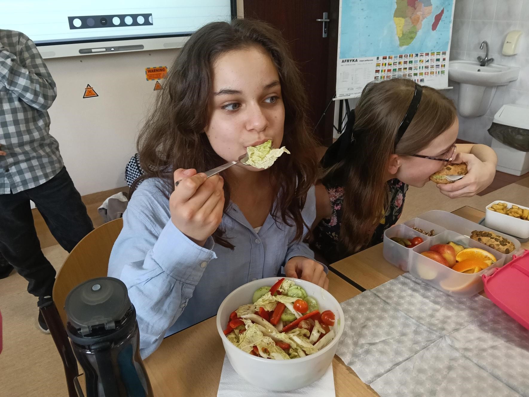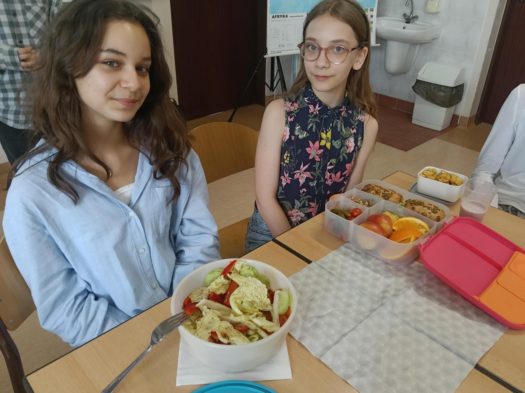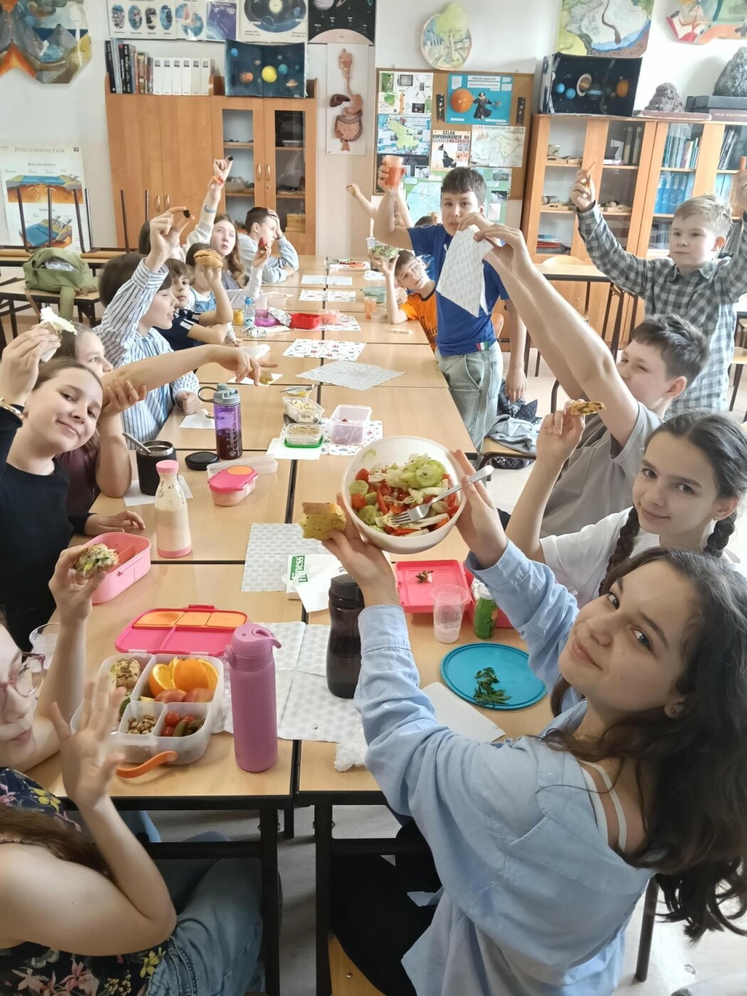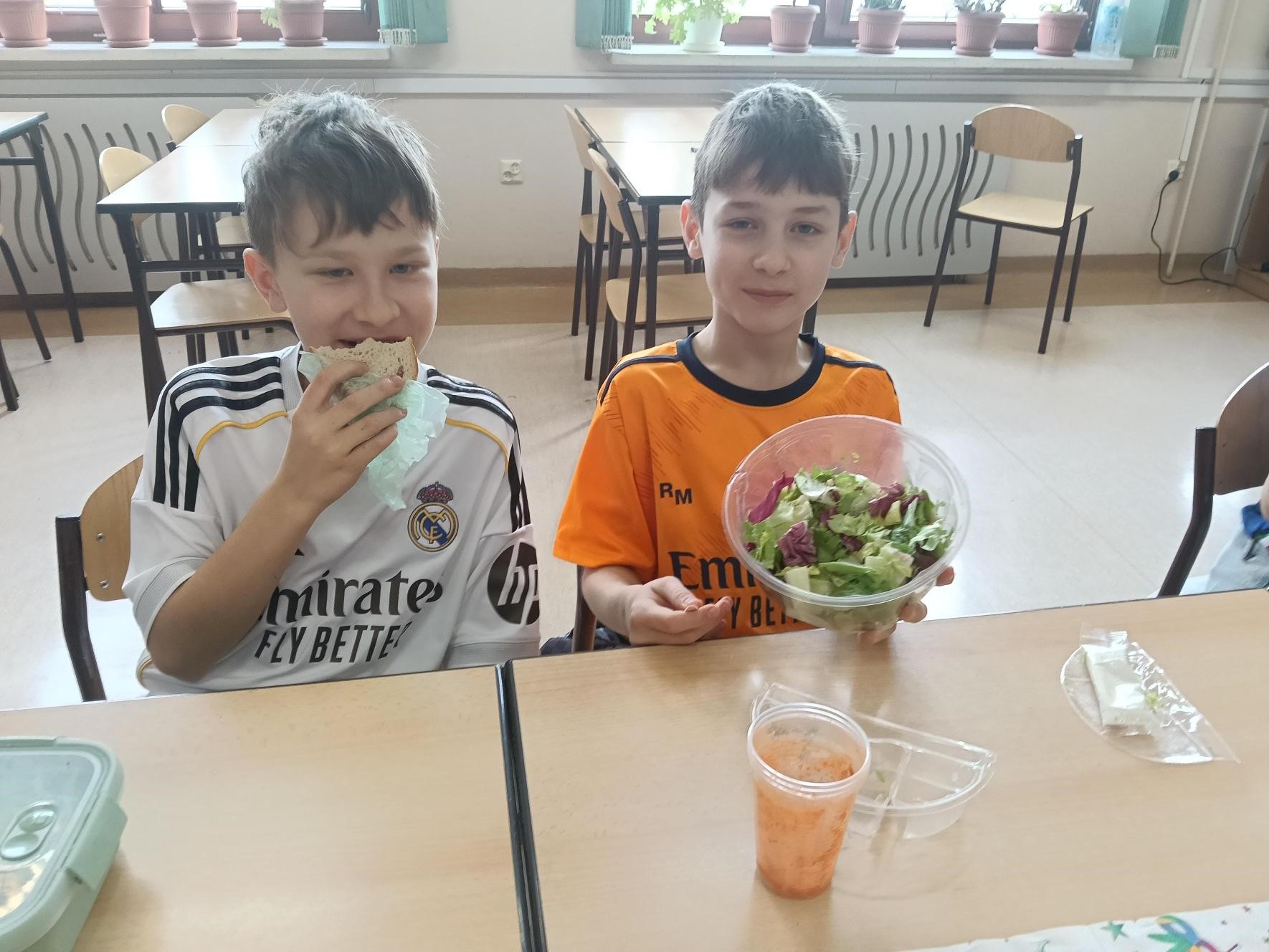 W 5c dzisiaj było naprawdę smacznie, zdrowo i bardzo kolorowo! Uczniowie przygotowali pyszne przekąski pełne witamin – na stołach pojawiły się świeże owoce, warzywa oraz sałatki i pyszne kanapeczki.
