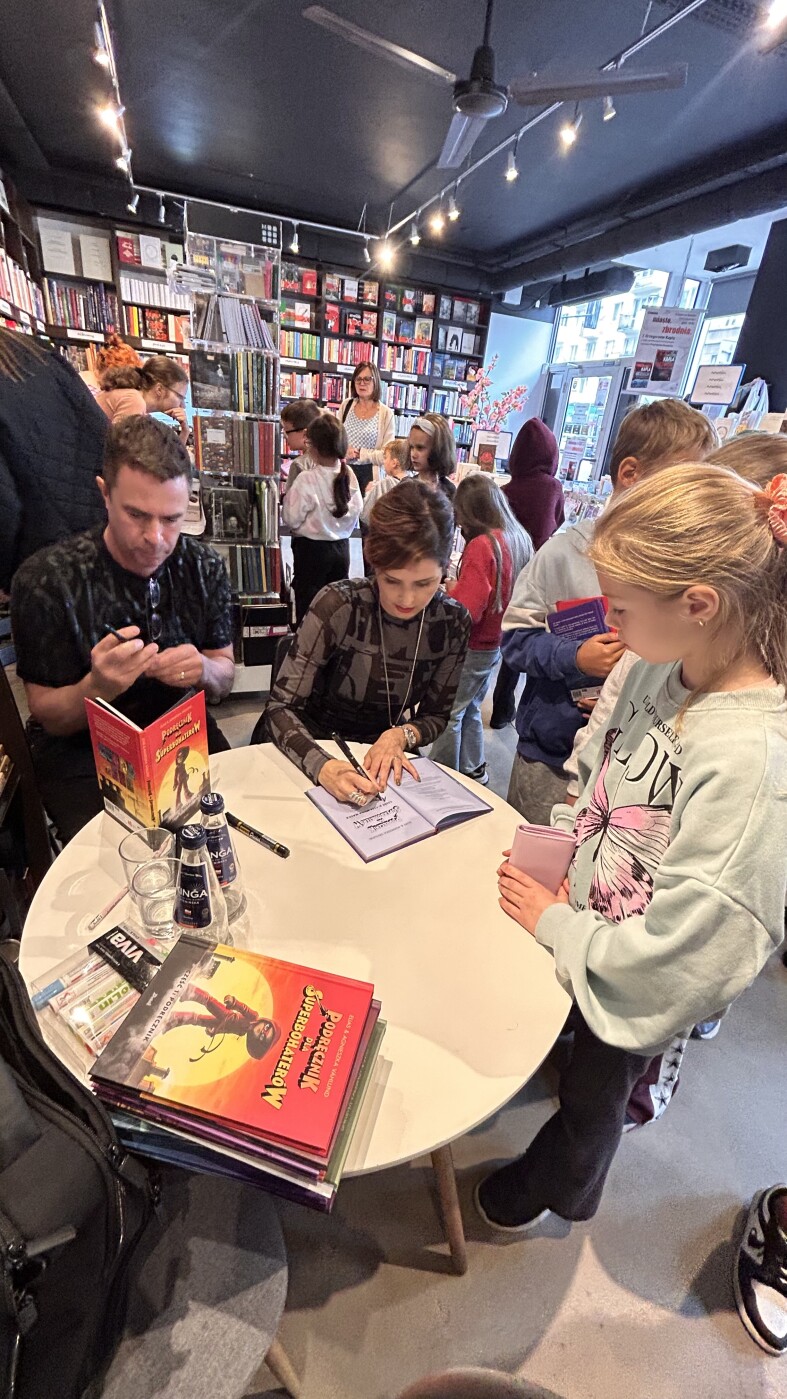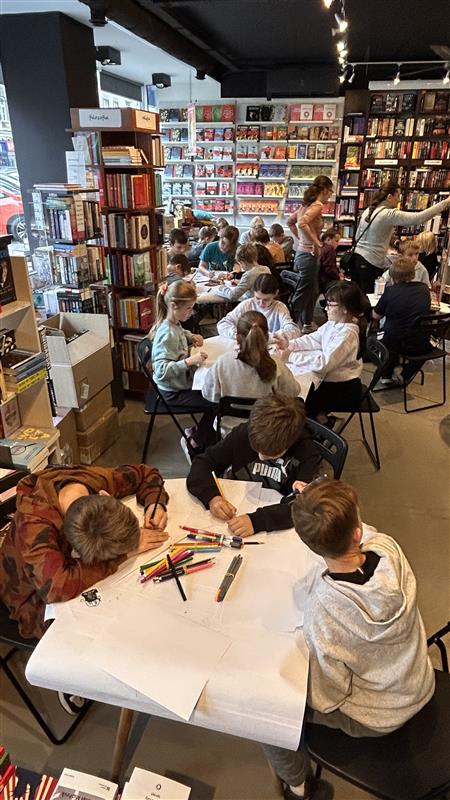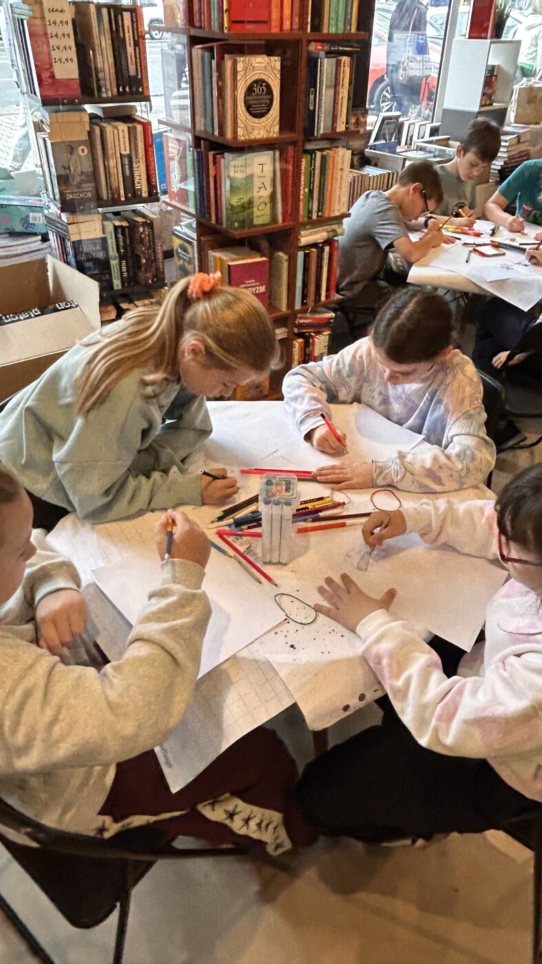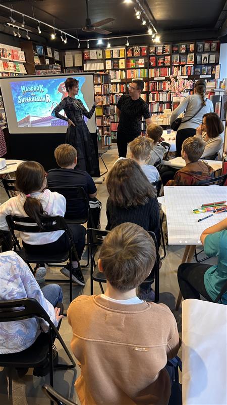 7 października klasa 3a uczestniczyła w spotkaniu w Księgarni Korekty, zorganizowanym w ramach projektu „Czytam, oglądam, rysuję”. Gośćmi wydarzenia byli Agnieszka i Elias Vahlund – autorzy popularnej komiksowej serii „Podręcznik dla superbohaterów”, poruszającej ważne tematy społeczne, takie jak odwaga, empatia i radzenie sobie z trudnościami.
