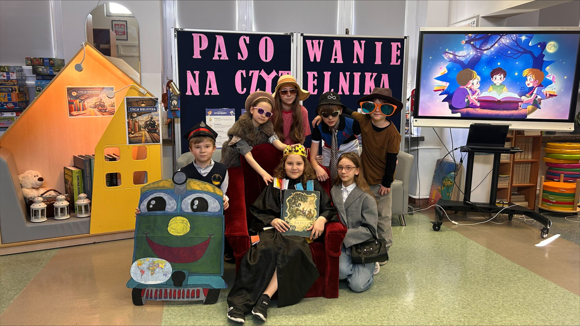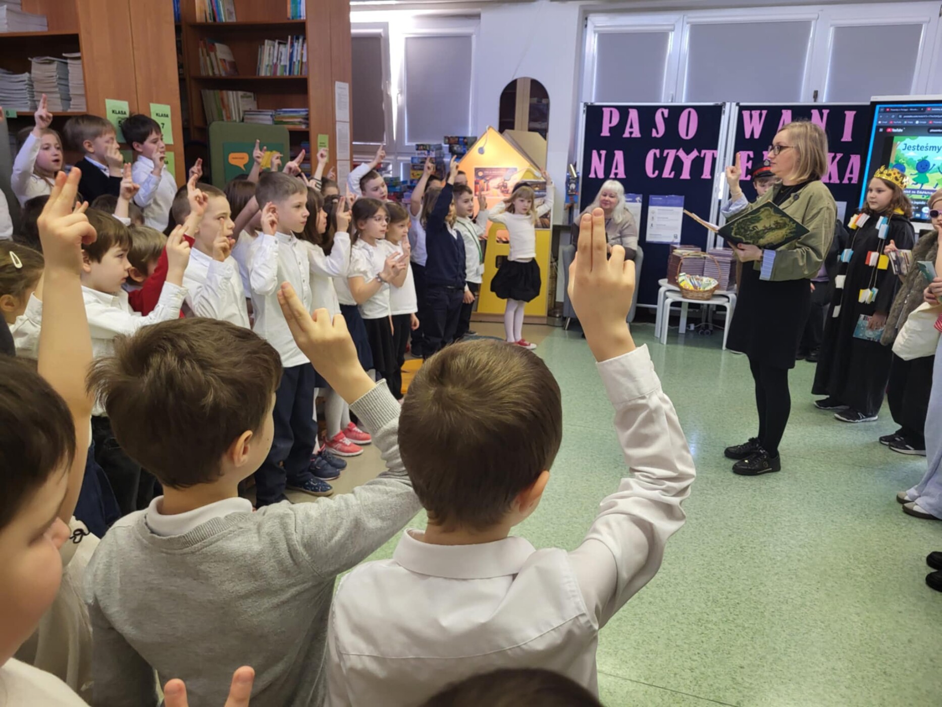 10 marca 2026 roku uczniowie klas pierwszych zostali uroczyście pasowani na czytelników naszej biblioteki szkolnej. W niezwykłą podróż „pociągiem czytelniczym” zabrali ich uczniowie klasy 5c wraz z paniami bibliotekarkami.