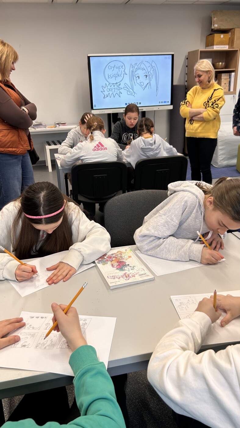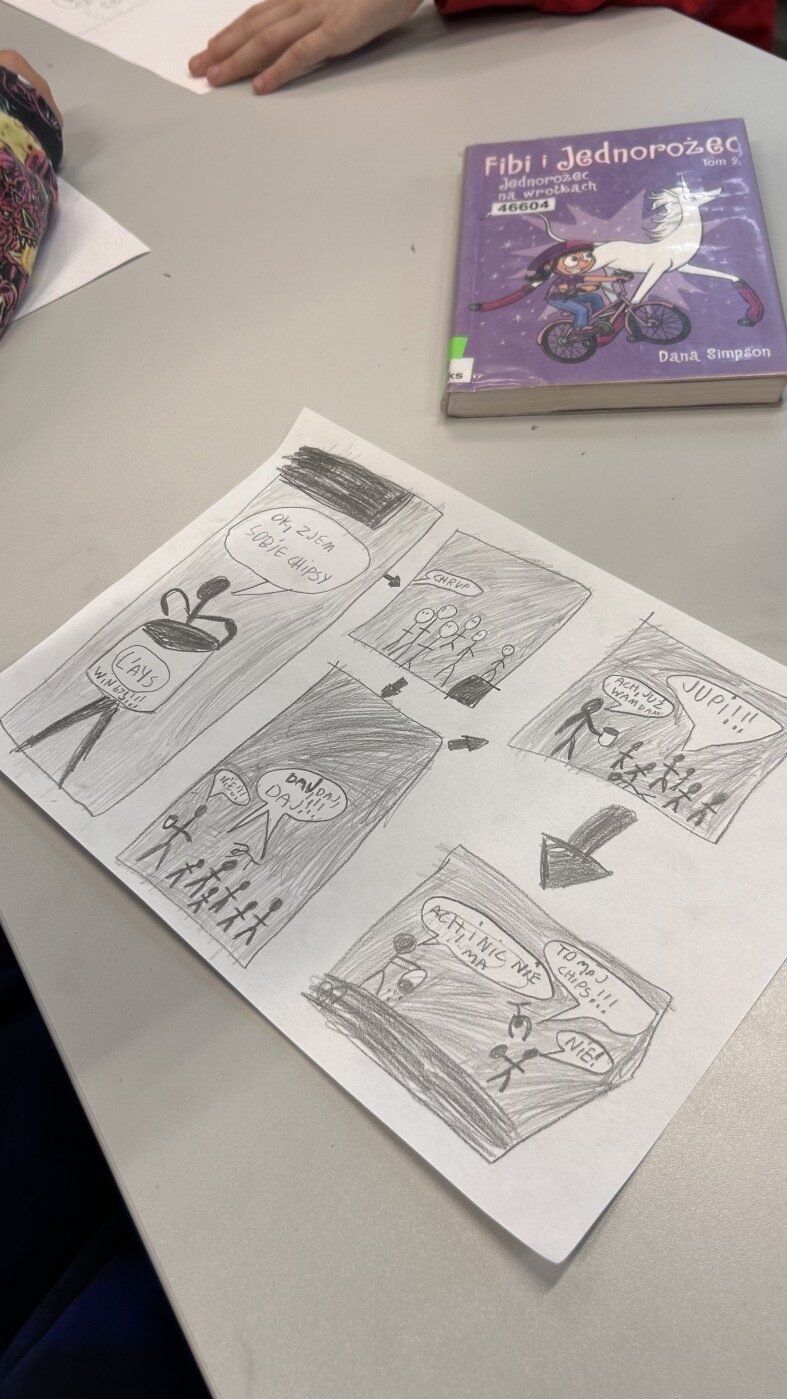 Uczniowie dowiedzieli się, że historie obrazkowe mają różne gatunki, poznali, czym jest manga i że czyta się ją od prawej do lewej, a także odkryli znaczenie pojęcia onomatopeja.