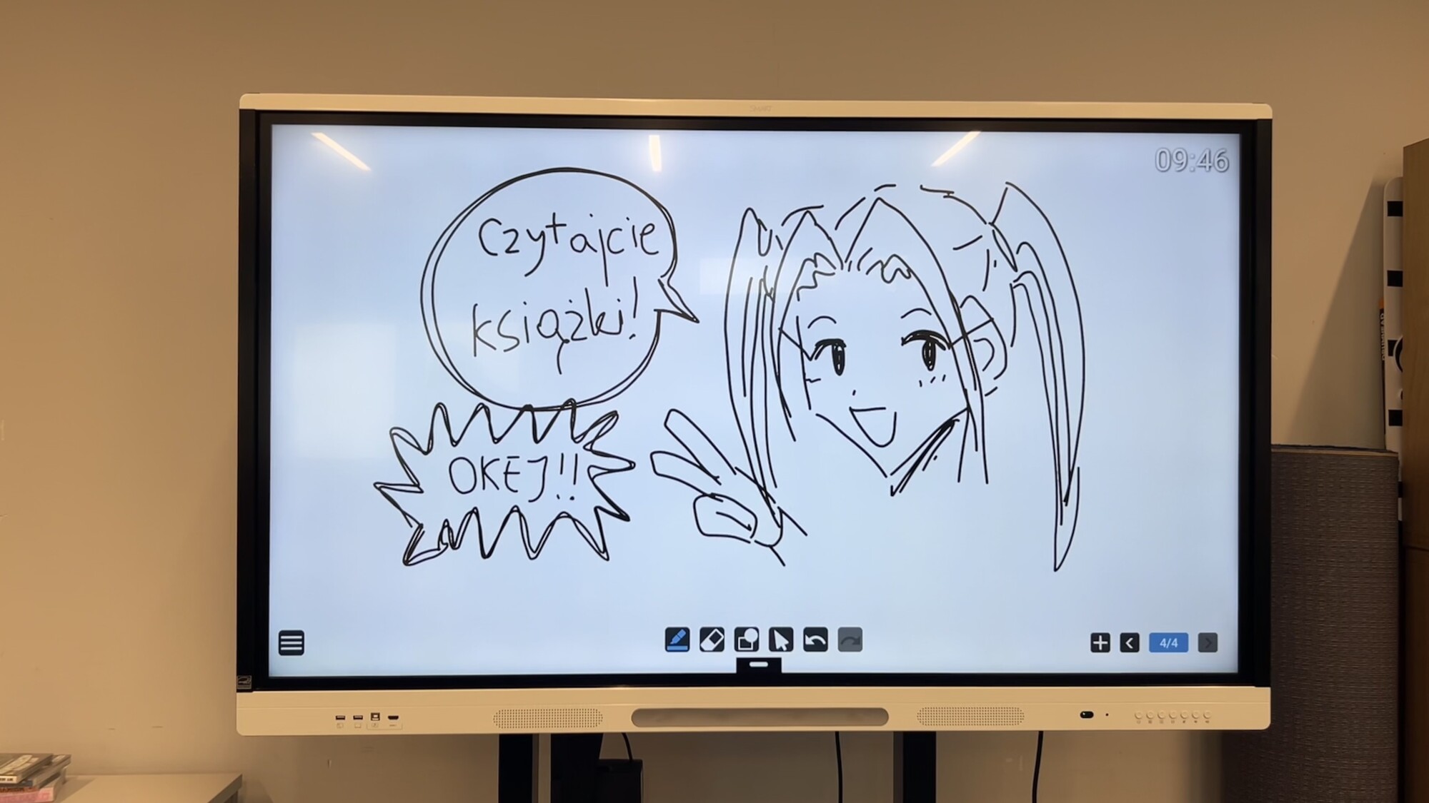 Nie zabrakło również krótkiej rozgrzewki przy tablicy multimedialnej, podczas której uczniowie mogli spróbować własnych sił jako rysownicy komiksów. Na zakończenie uczestnicy mieli okazję przejrzeć wybrane komiksy ze zbiorów biblioteki.
